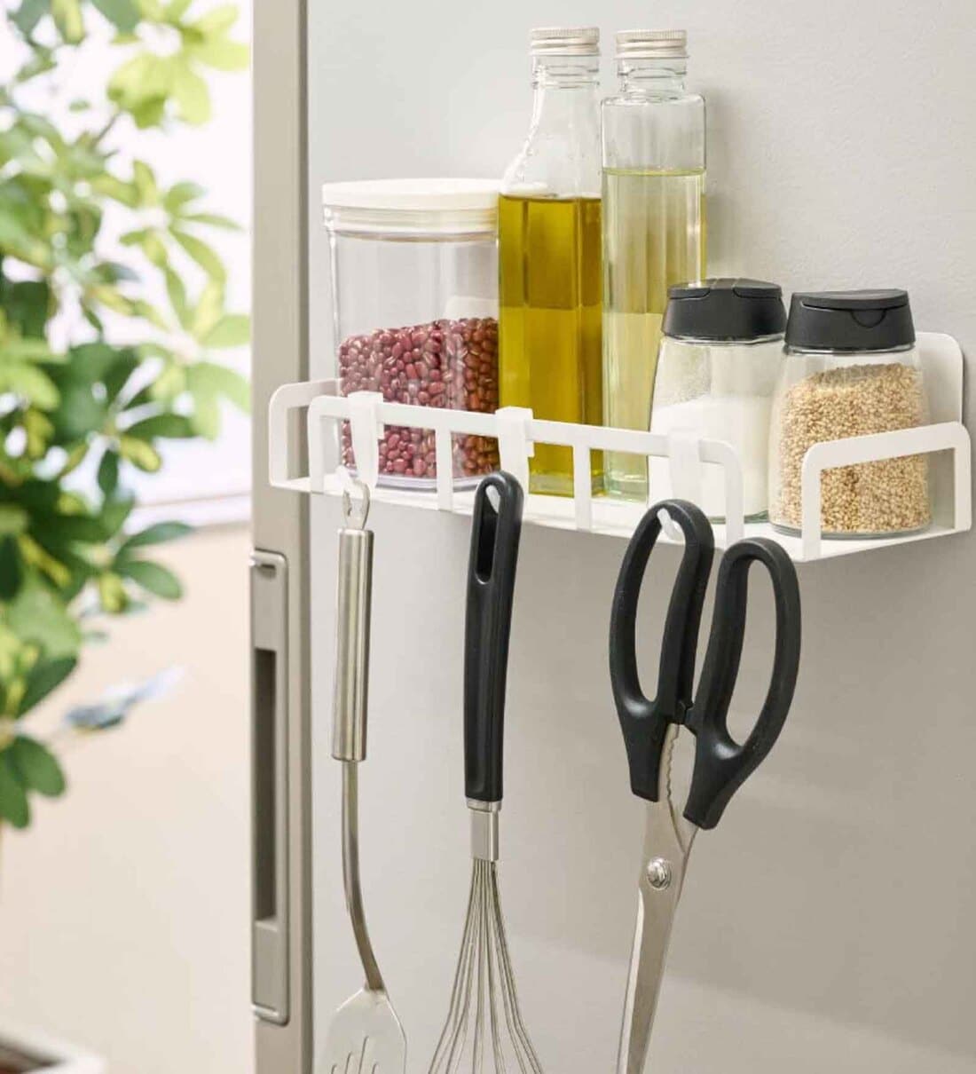 White Carbon Steel Magnetic Storage Rack with Hooks