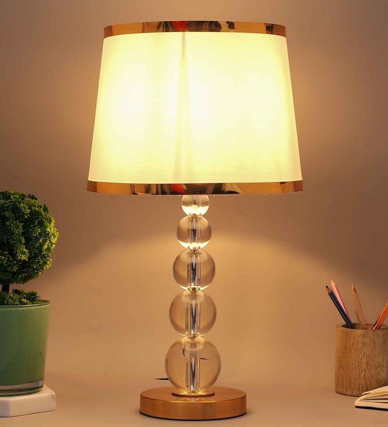 White Cotton Fabric Shade Divine Growth Glass Globe Premium Table Lamp With Brass Base