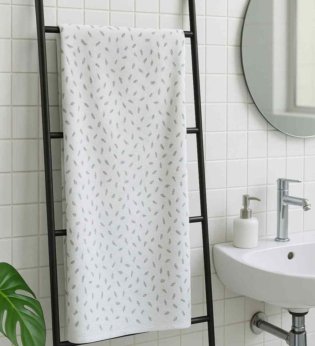 White Cotton Floral 140 GSM Bath Towel (1 Pc)