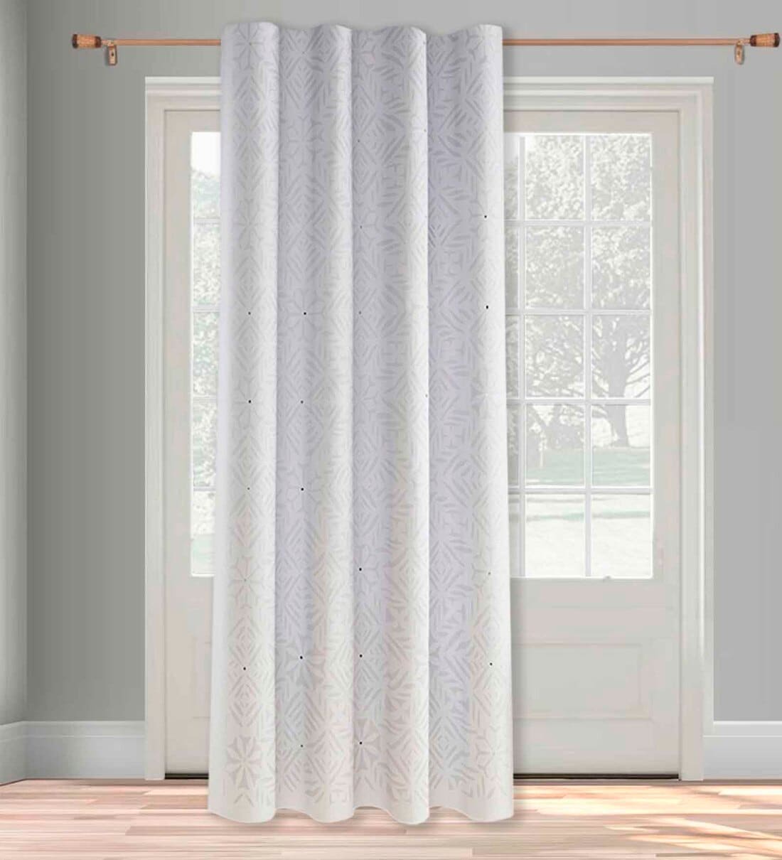 Introducing kivya cotton embroidered curtain-where art meets elegance. Elevate your home with the allure of Applique craft. Adorn your windows with this exquisite masterpiece that exudes sophistication and style. Let the mesmerizing patterns and soft cotton drape create a captivating ambiance in your abode. Redefine your space with this stunning curtain for home.
