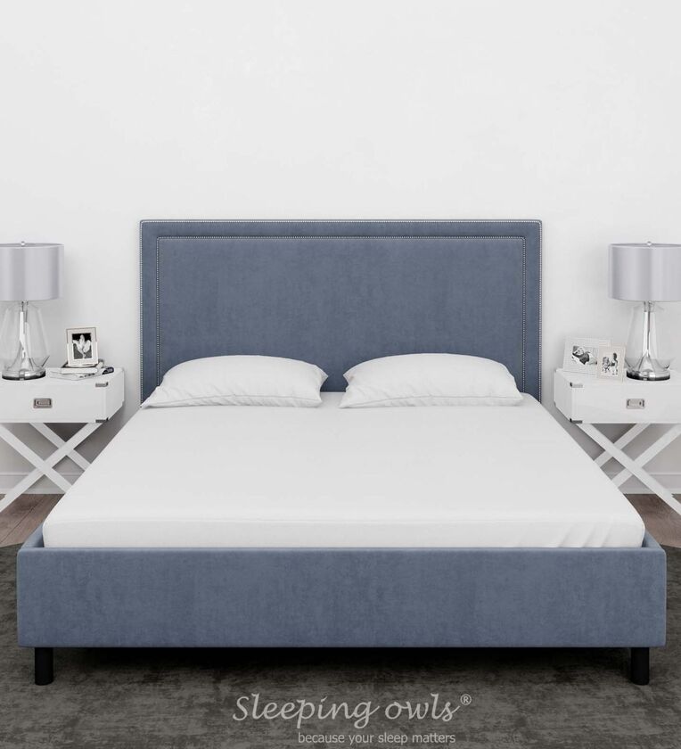 Sleeping Owls 100% Soft Cotton Solids Finest 300TC Plain Super King Bedsheet with 2 Pillow Cover - MED BLUE