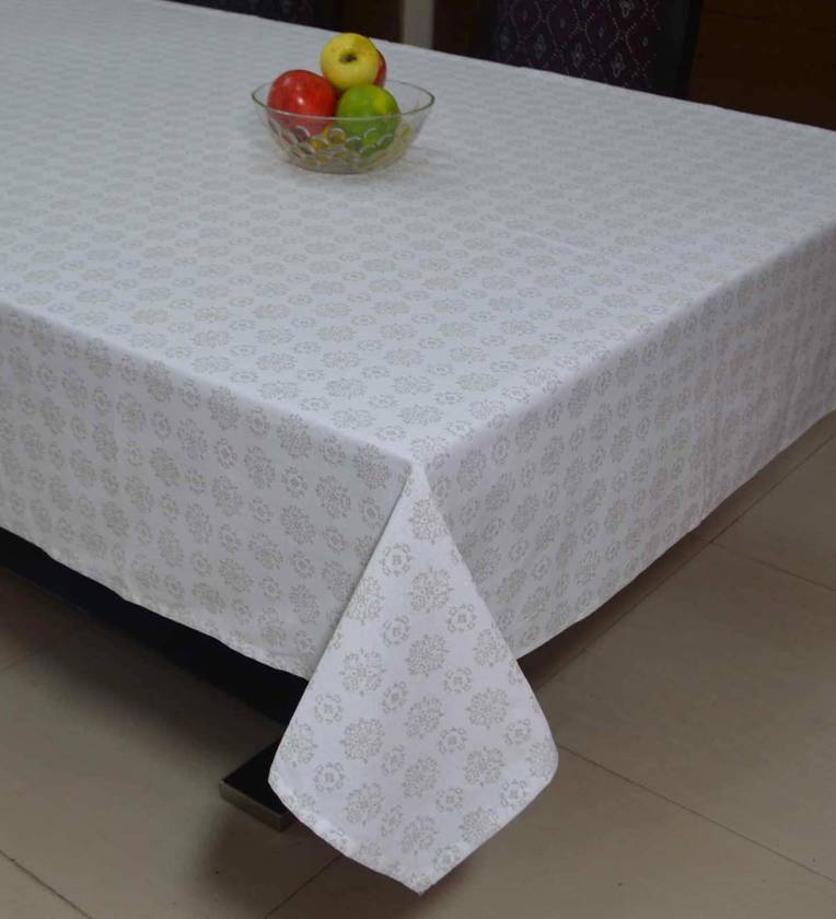 Floral Pattern White Cotton 89X55 Inch Table Cloth
