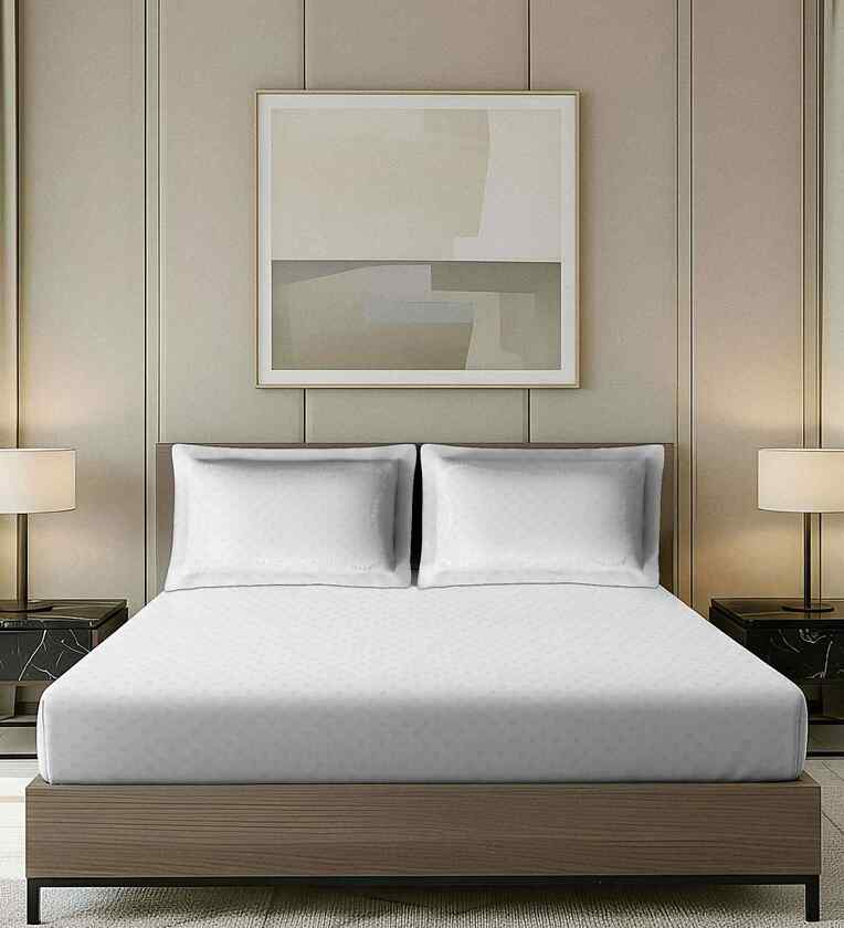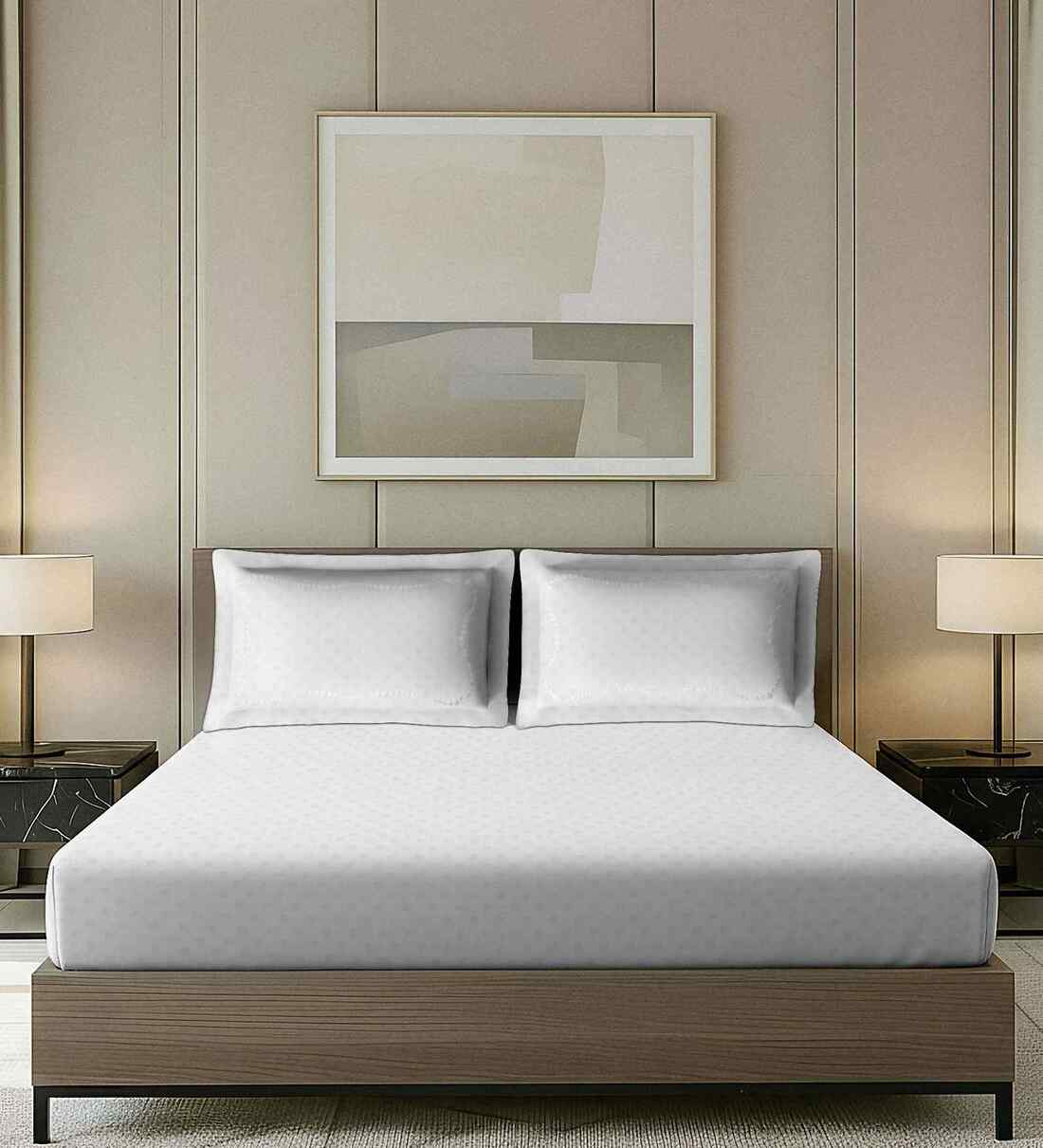 White Dotted Pattern With Dotted Embroidery 500 TC Cotton King Double Bedsheet With 2 Pillow Covers