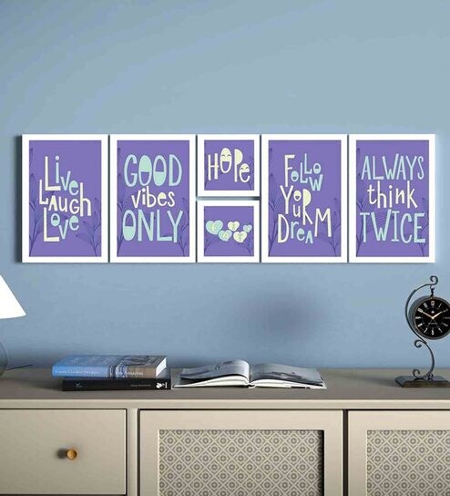 White & Purple Engineered Wood (Set of 6) Art Prints