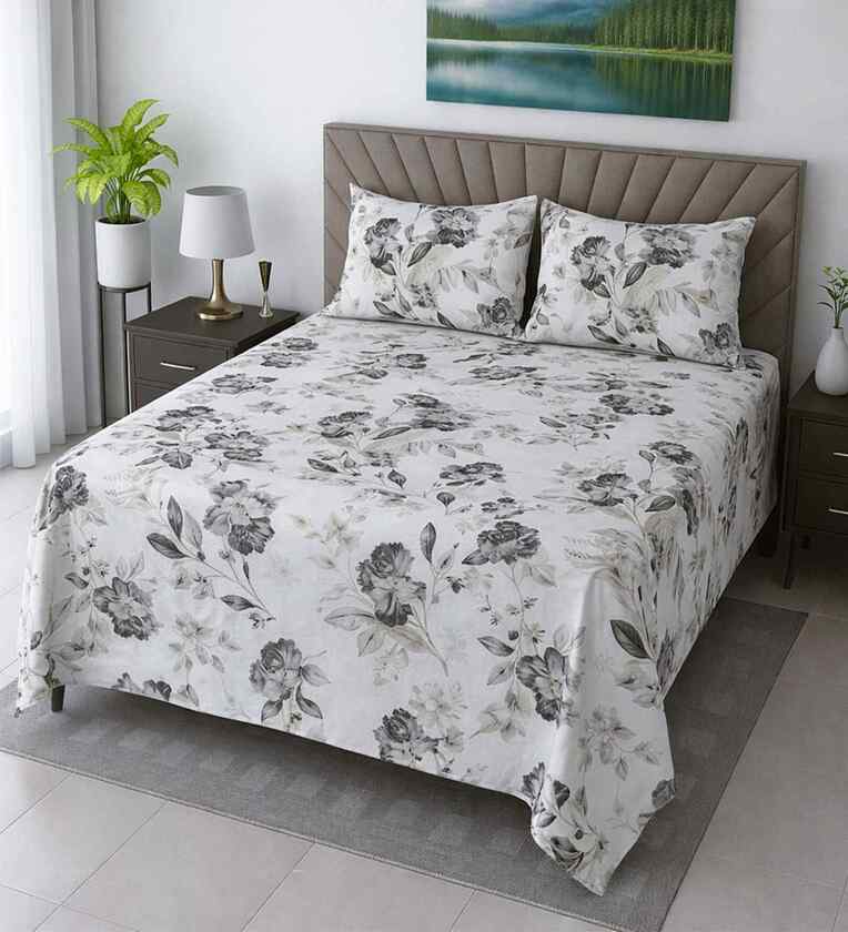 "Features minimalist Flowers & leaves sketches in striking shades on white for a clean, contemporary look". Upgrade your sleep with our Silky Touch 100% cotton, Flat bed sheets. Made from super fine premium cotton fiber. Comfortable and breathable, the soft buttery fabric will keep you in bed just a tad bit longer. The bed sheet is in Super King Bed size and is accompanied with a matching pillow cover, The Thread count of 330 TC gives a reason to have comfort and hence happiness. (1 Bed sheet + 2 Pillow Cover). Can be Hand & Machine washed. Suitable for all seasons, 100% Cotton, Super soft and rich premium fabric, Preshrink, Quality Stitched & Skin friendly