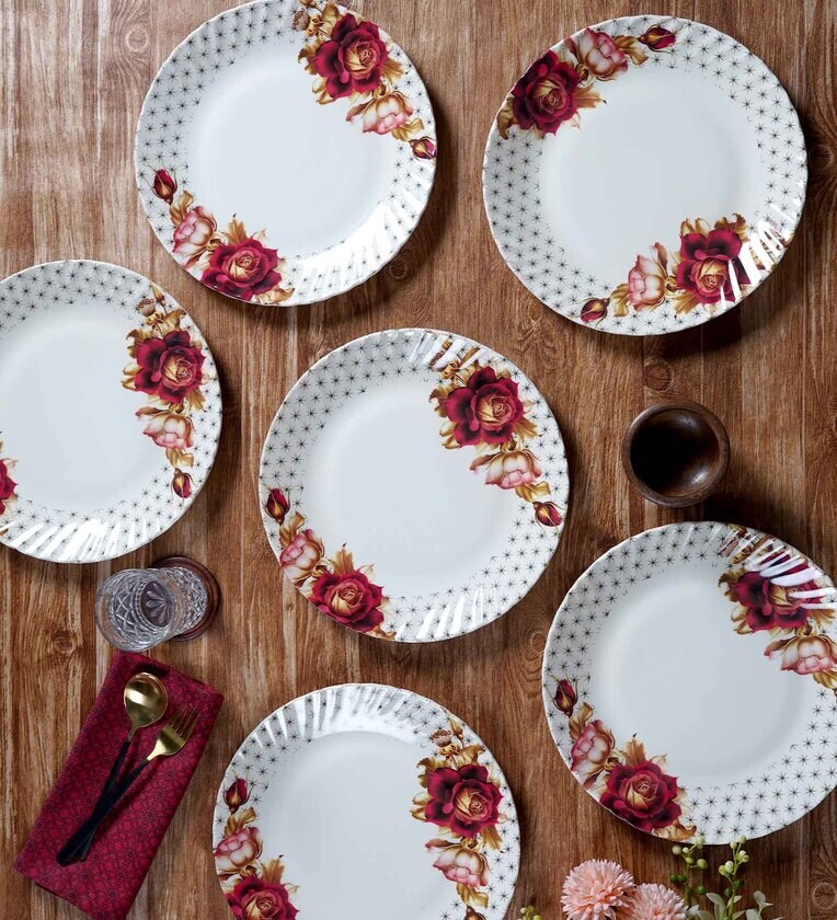 White Floral Melamine (Set of 6) Dinner Plates
