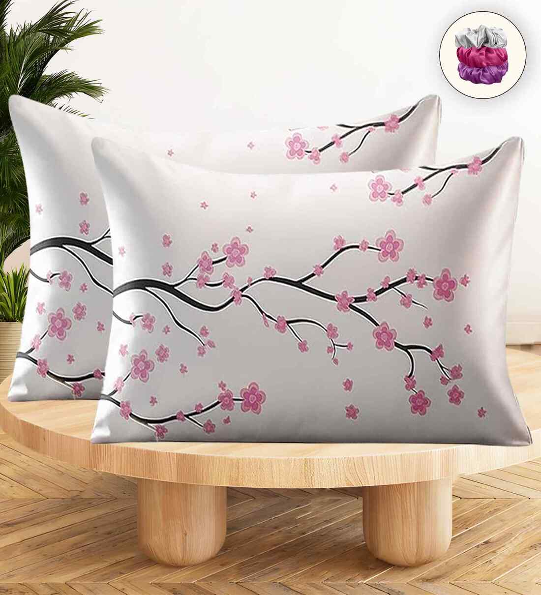 White Flower Premium 3D Printed Pillow Covers (Set of 2) With 1Pc Scrunchie Free