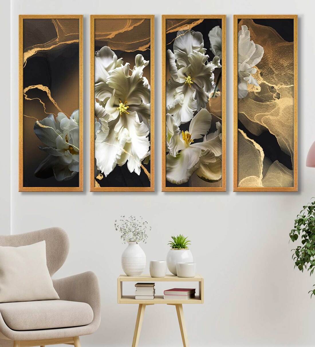 White Flowers Multicolour Canvas Framed Floral Art Panel Set of 4
