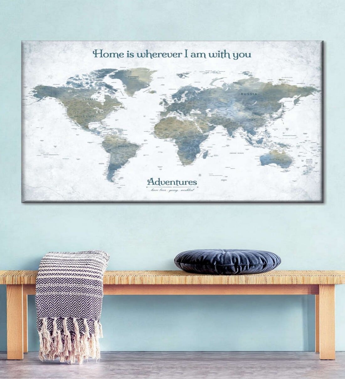 POSTERS AND TRUSS White Grey World Map Printed Framed Wall Art