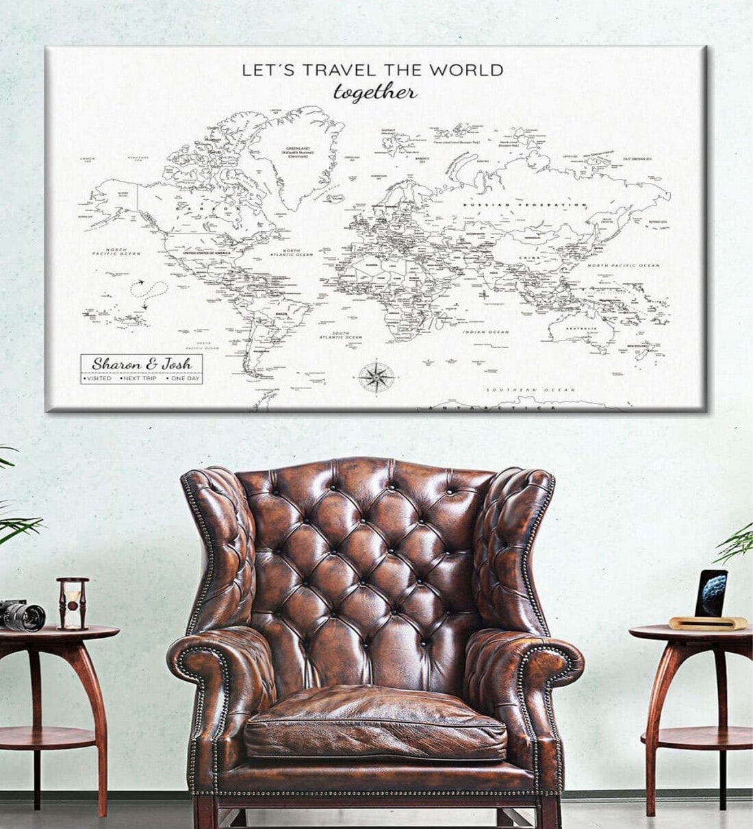 POSTERS AND TRUSS White & Grey World Map Printed Wall Art