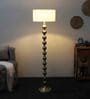 White Iron & Cloth Shade Club Floor Lamp With Iron Base