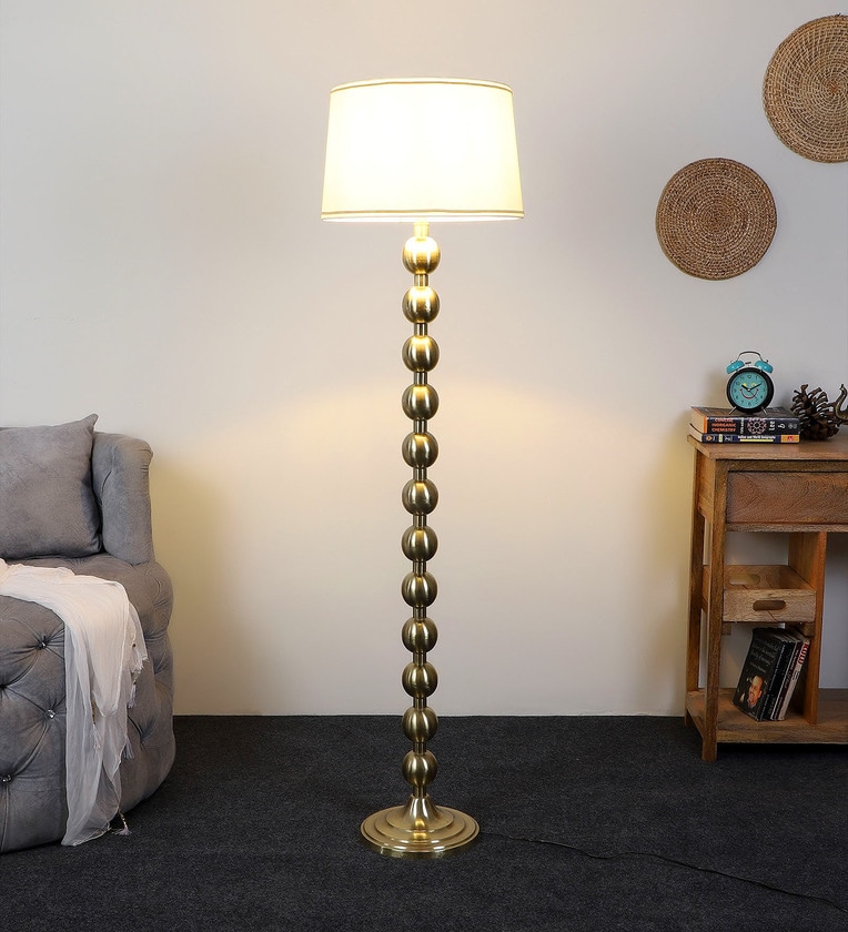 White Iron & Cloth Shade Club Floor Lamp With Iron Base