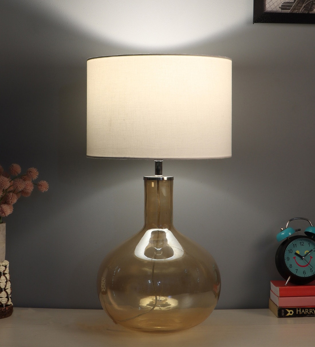 White Iron & Cloth Shade Tablel Lamp With Gold Base