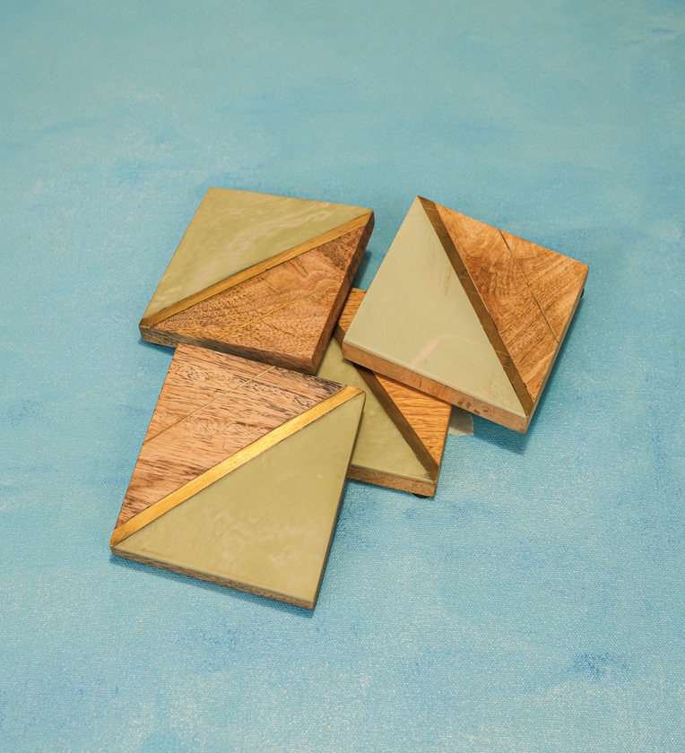 White Mango Wood (Set of 4) Resin & Brass Coasters
