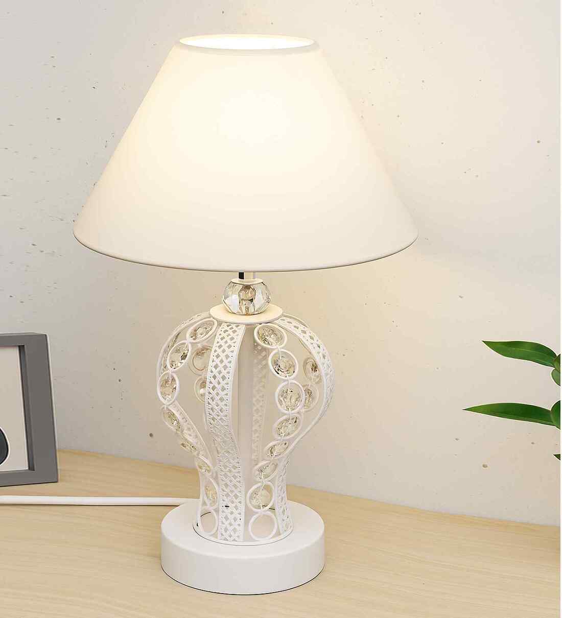 Elevate your home d cor with this exquisite crystal table lamp featuring a stunning spherical shade pleated design. The intricate crystal pattern creates a mesmerising light. The lamp comes with a sturdy metal base in elegant white finish and includes a standard E27 ring holder compatible with most bulb types (bulb not included). The two-pin plug ensures easy installation, while the premium quality materials durability and lasting beauty. The crystalline shade's unique geometric pattern disperses light beautifully, creating a warm and inviting ambiance perfect for bedrooms, living rooms, or study areas, table lamp, lamp, desk lamp, modern table lamp, vintage table lamp, industrial table lamp, minimalist table lamp, glass table lamp, crystal table lamp, warm light lamp, white light table lamp, soft light lamp, home d cor table lamp, decorative lamp, ambient lighting lamp, compact table lamp, table lamp, affordable table lamp, luxury table lamp for home decoration.