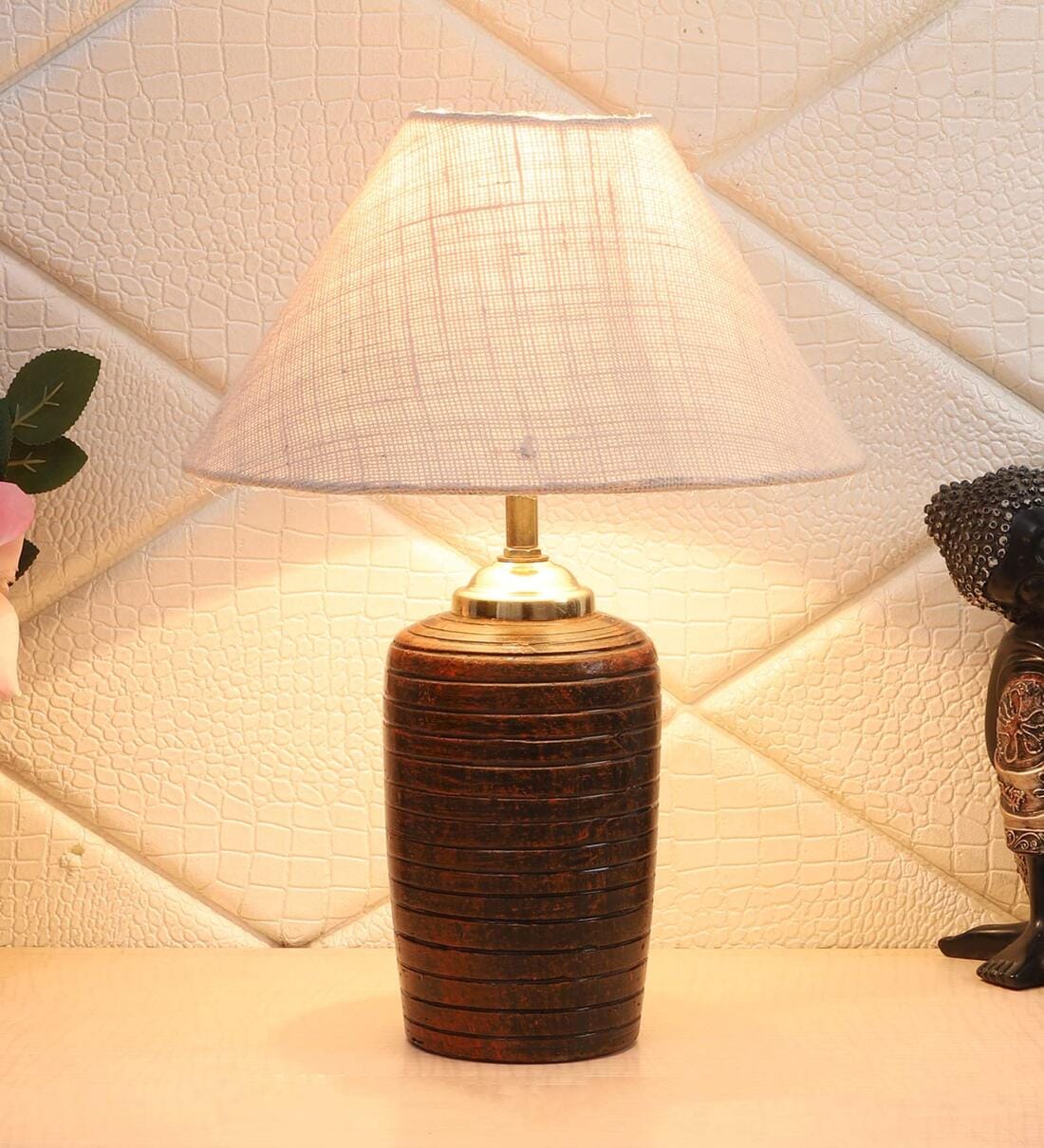 White Natural Fiber Shade Table Lamp With Brown Terracotta Base