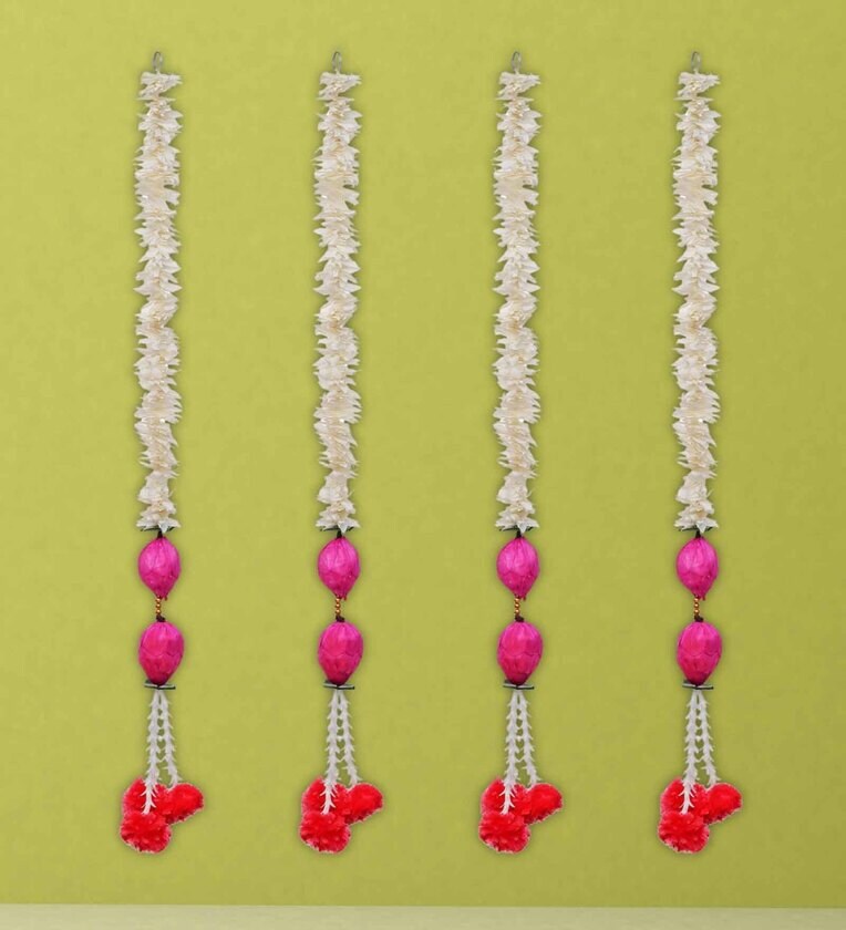 White & Pink Plastic Pink Lotus & White Red Artificial Flowers Hanging (Set of 4)