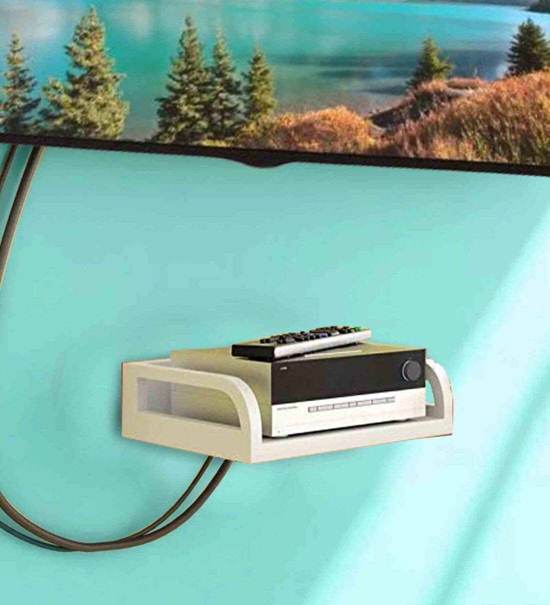 These simple White floating shelves are as much a piece of art as minimalist wall decorative pieces of TV setup of box and can small storage item. Modern design of the shelves add wall mounted accents to any home decor. They are a great choice for your family and friends. This floating TV console has a stylish design, add elegance to your living room, bedroom or media room, and doesn't occupy floor space.