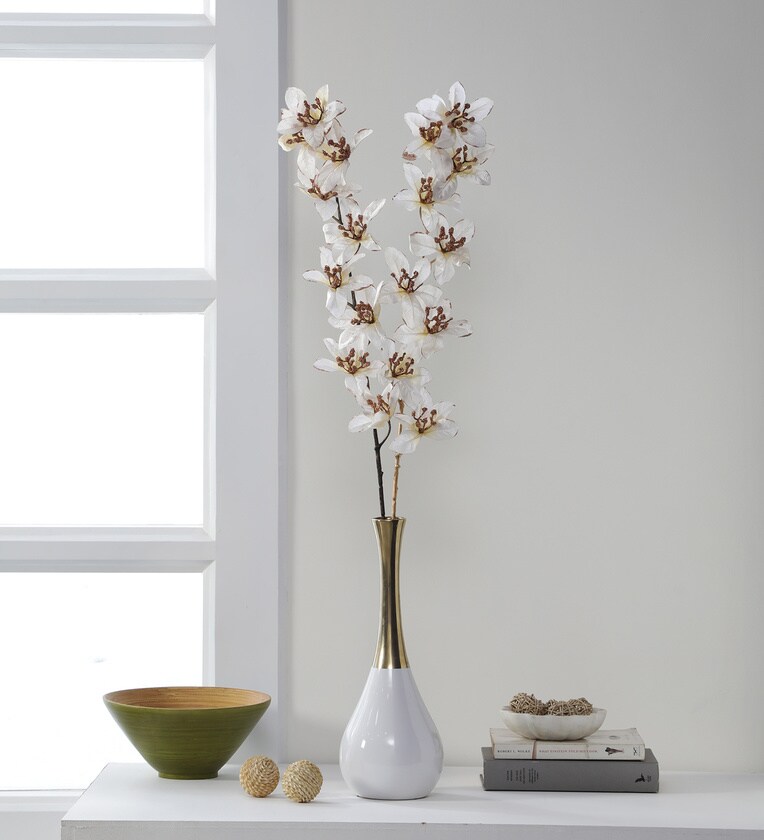 White Polyester Artificial Glittering Forsythia Flower Set of 2