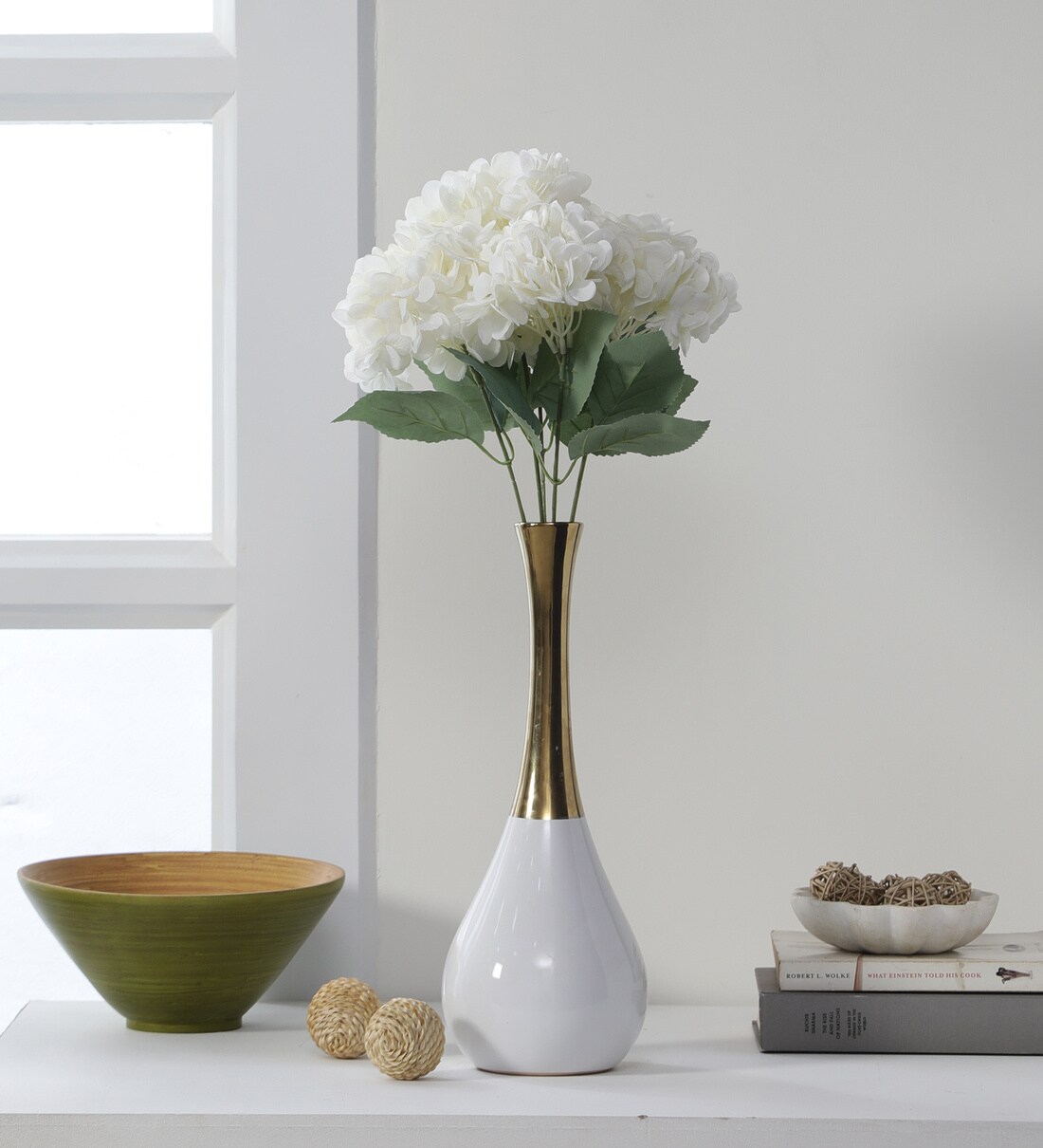 White Polyester Exclusive Hydrangea Bunch Artificial Flowers