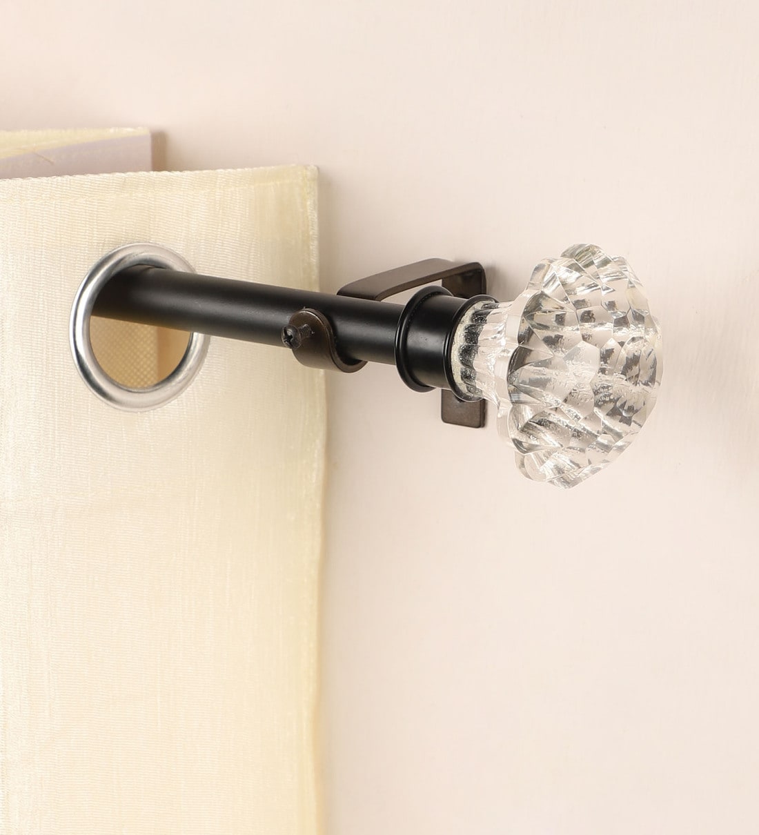 Rod Colour: Black | Finial Colour : White | Rod Material : Iron | Finish : Powder Coated | 1- Inch rod diameter capable of handling heavier fabrics | Load capacity of 20 KGs