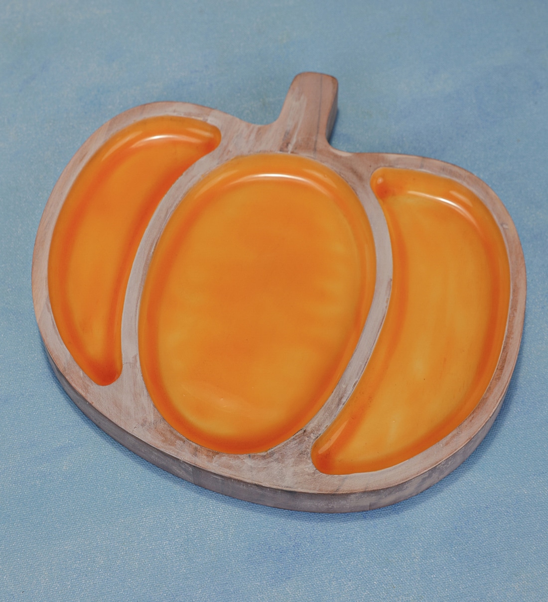 White Pumpkin-Shaped Acacia Wood Appetizer Platter