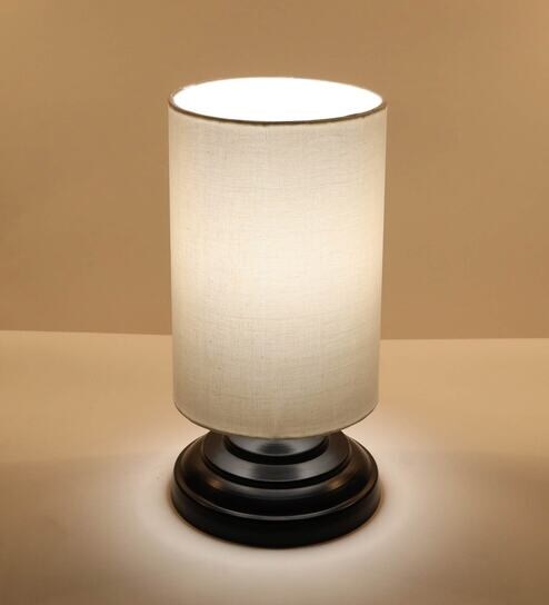 Festiva White Cotton Shade Table Lamp With Metal Base