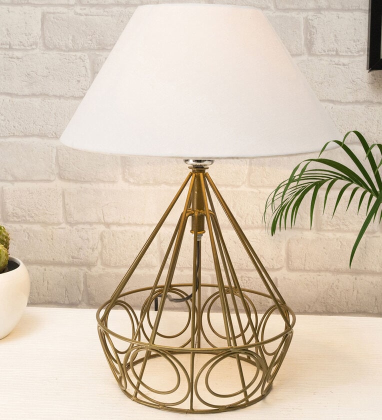 White Shade Table Lamp With Metal Base