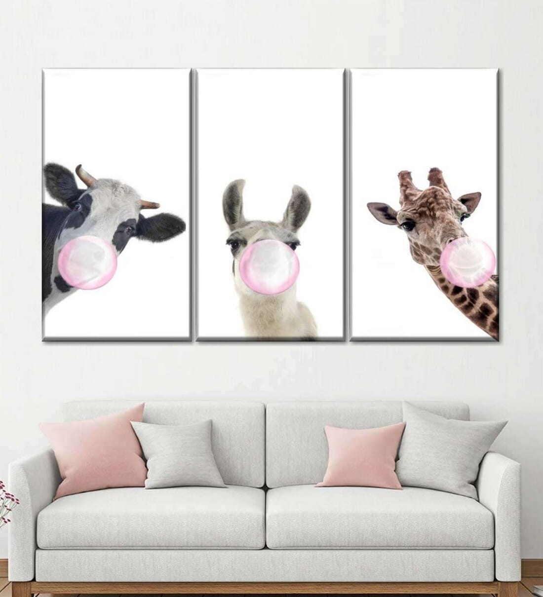 POSTERS AND TRUSS 3-Pcs White Silly Bubble Gum Animals Painting Wall Art