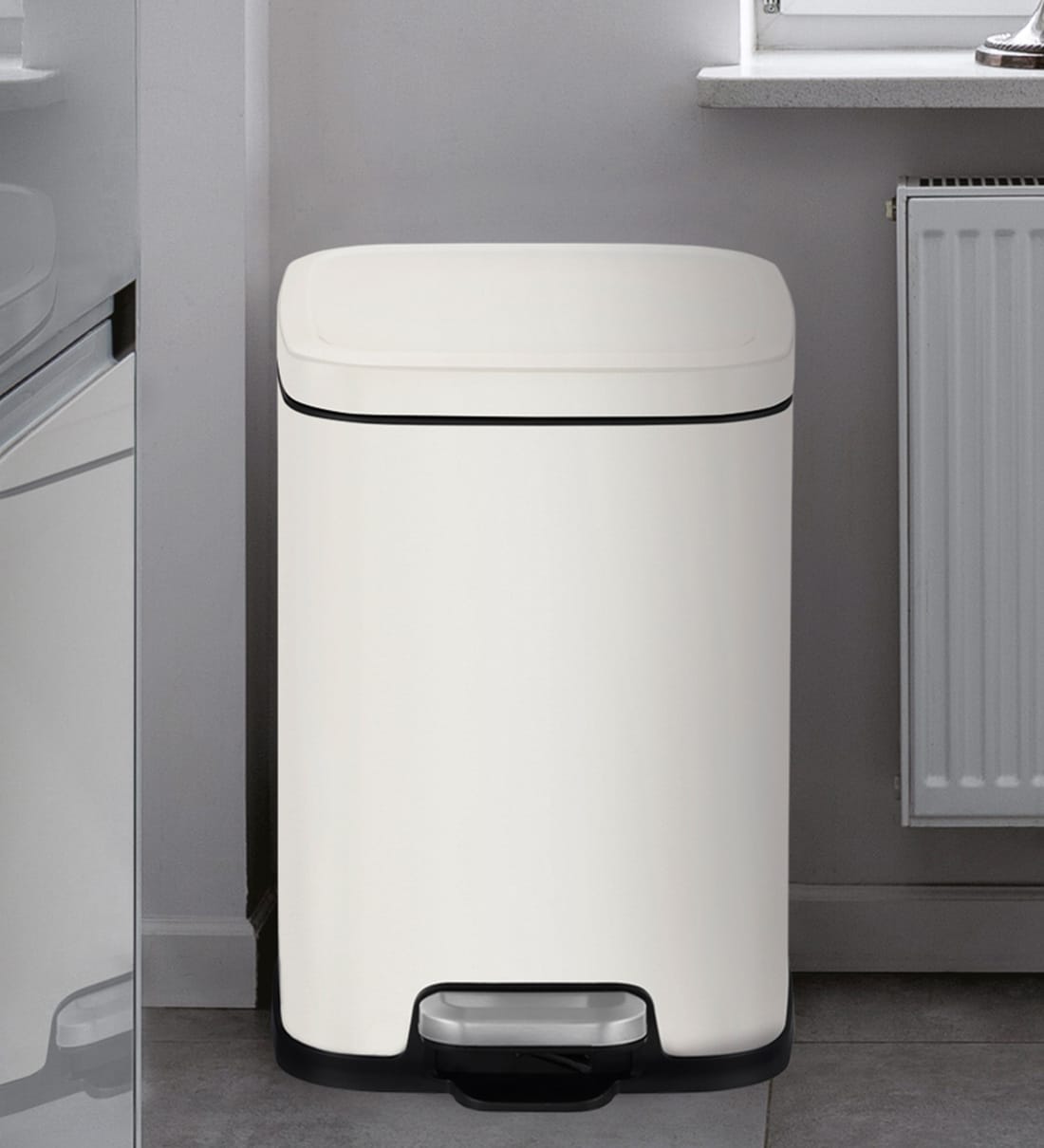 White Soft-Close Bathroom Trash Can 6L Stainless Steel Pedal Bin with Lid & Liner