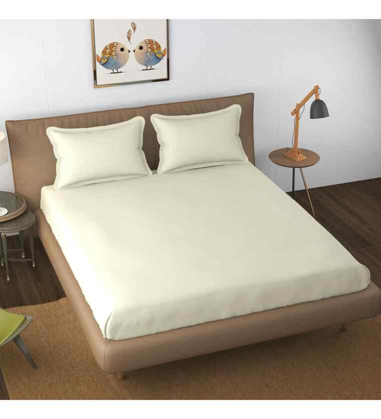 White Solid 144 TC Cotton King Sized Bedsheet Bedsheet 2 Pillow Shades Collection