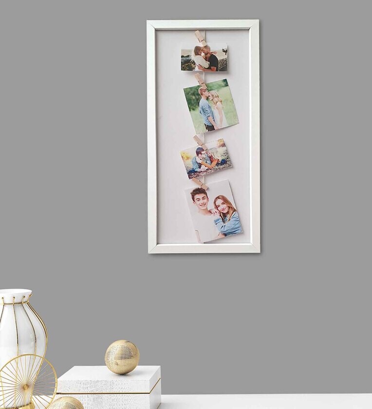 White Sythetic Wood Rectangular Shape Clip Photo Frame