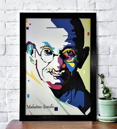 White Wood "Abstract Mahatma Gandhi" Textured Paper Scratch & Dust Proof Framed Art Print