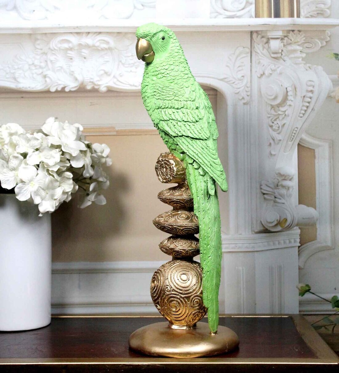Wings of Beauty Parrot Green & Gold Polyresin Figurine