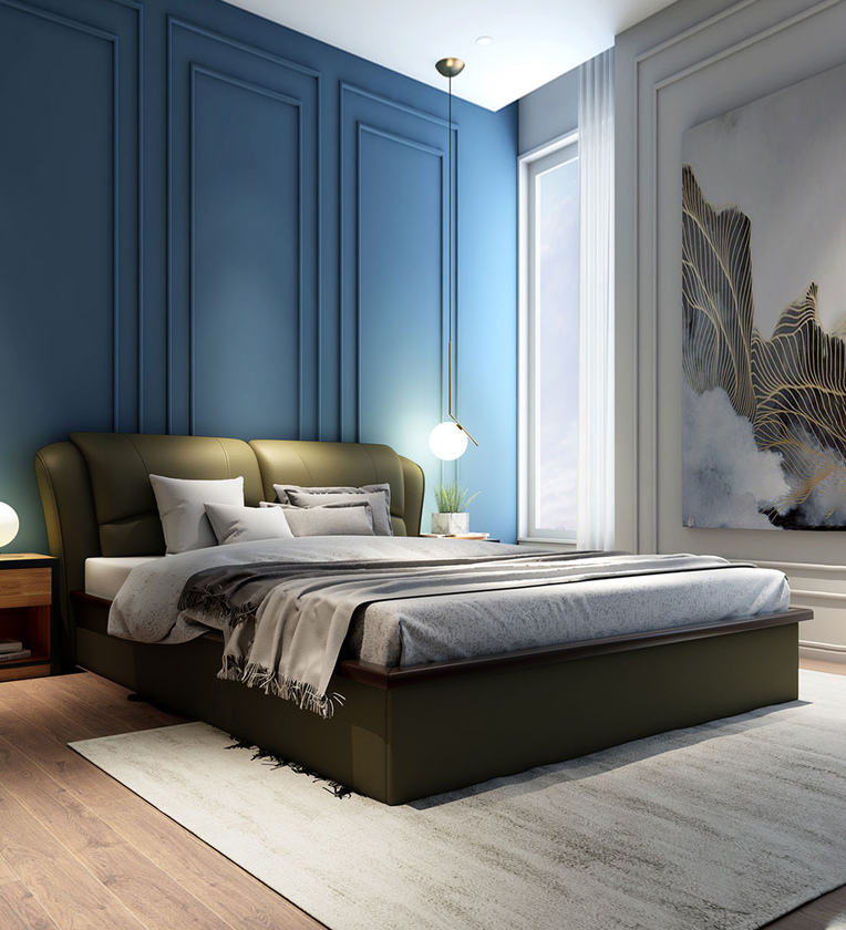 Winston Leatherette King Size Beds with Hydraulic Storage in Green Colour