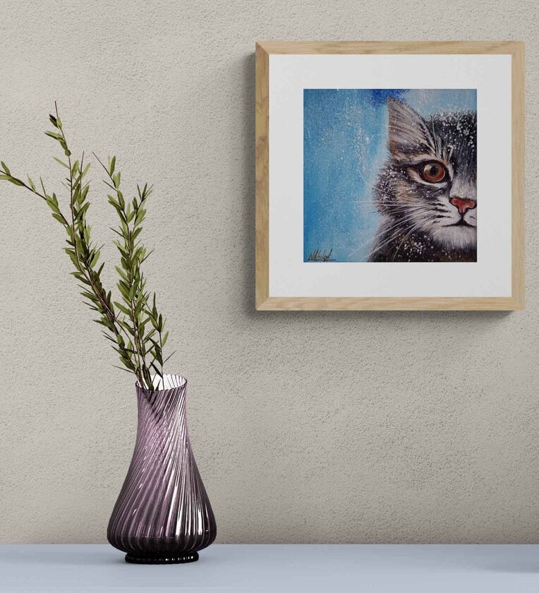 Add meaning to your home & workspace with Atypical Art. In a winter wonderland, a delicate kitty sits upon a frost-kissed branch, eyes wide with curiosity. Soft flakes dance around her, weaving a tapestry of serenity. The painting captures her innocence against the ethereal backdrop, a timeless portrait of tranquility and warmth amidst the chill.What you will receive:- Original Artwork without frame- Certificate of Appreciation for empowering an Artist with Disability (shared over email) Expected delivery time: 7-10 business days