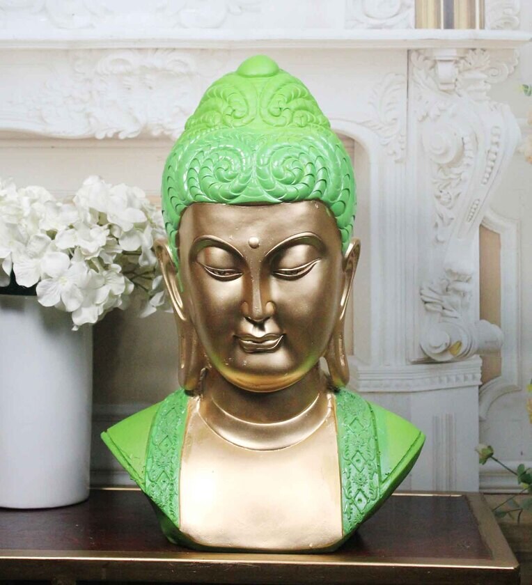 Wisdom's Glow Buddha Green & Gold Polyresin Buddha