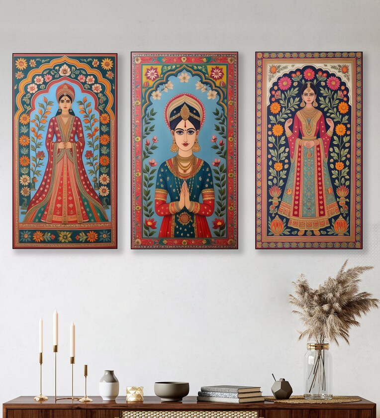 Woman Canvas Series Set of 3 Printed Wall Painting Black Frame
