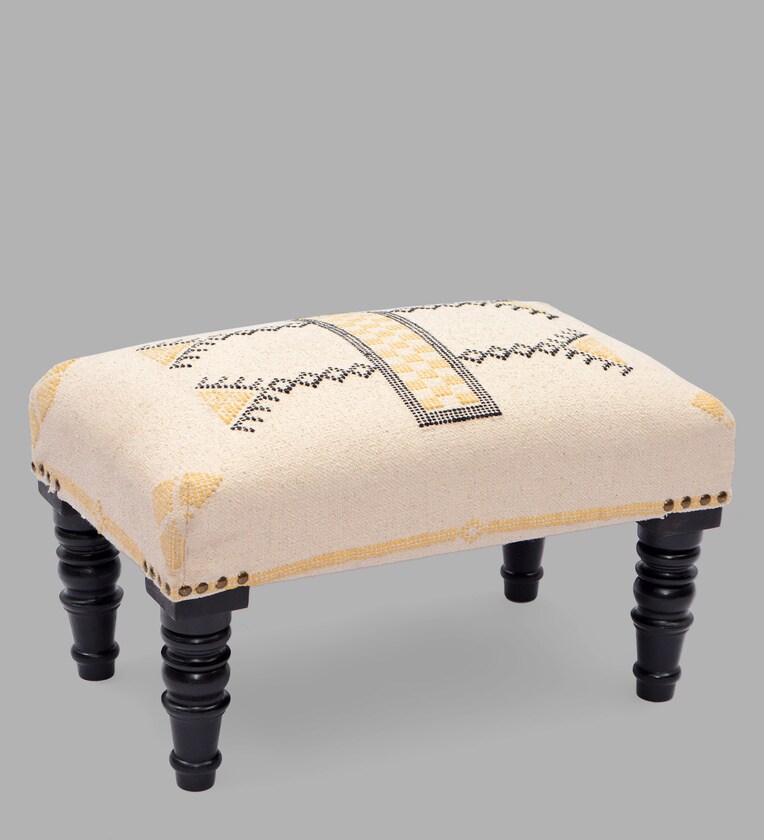 An Eye Catching Look Handcrafted Rug Upholstered Wooden Stool for Your Living Room, Bedroom Furntiure. This Wooden Stool Made by High Quality Wood With Handmade Rug Fabric; Which Developed By Our Local Artisans.