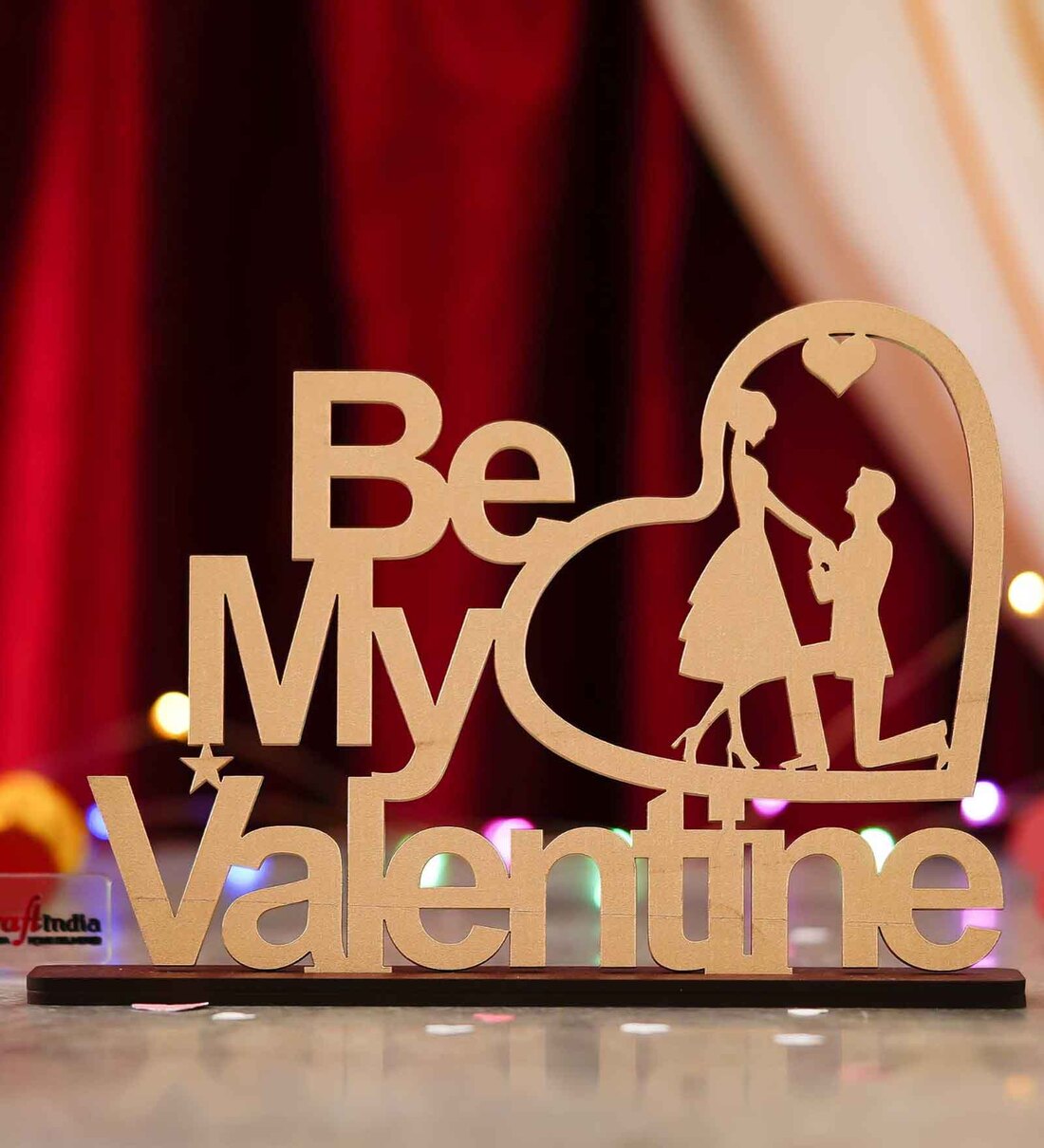 Wooden Golden Be My Valentine Couple Showpiece Valentine Gift