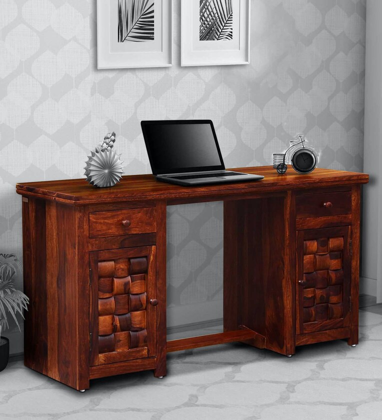Woodway Sheesham Wood Writing Table in Honey Oak Finish