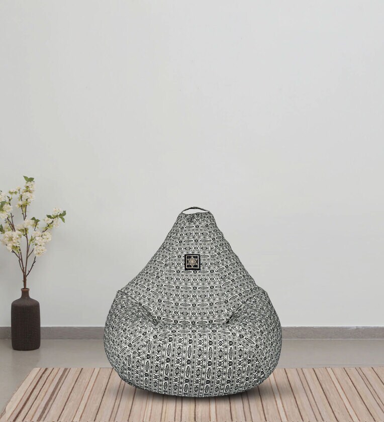 XXL Fabric Bean Bag Cover in Ivory & Black Colour