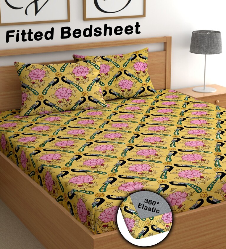 CG Homes Cotton Double Fitted 180 TC Printed Bedsheet