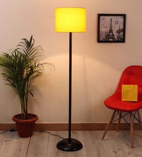 Yellow Cotton and Polyvinyl Shade Club Floor Lamp With Iron Base