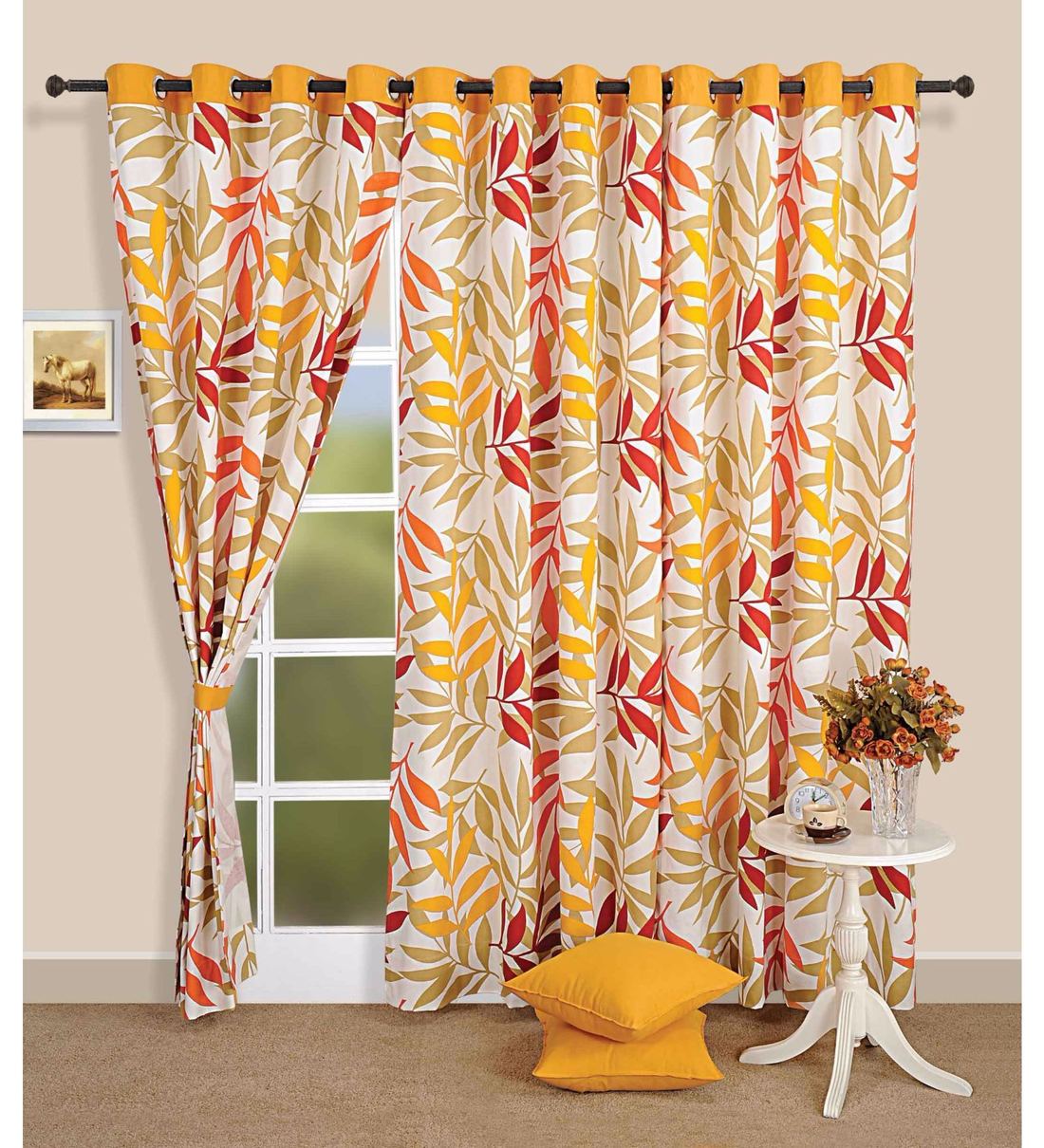 Yellow Cotton Floral 5ft Semisheer Eyelet 1 Pc Window Curtain