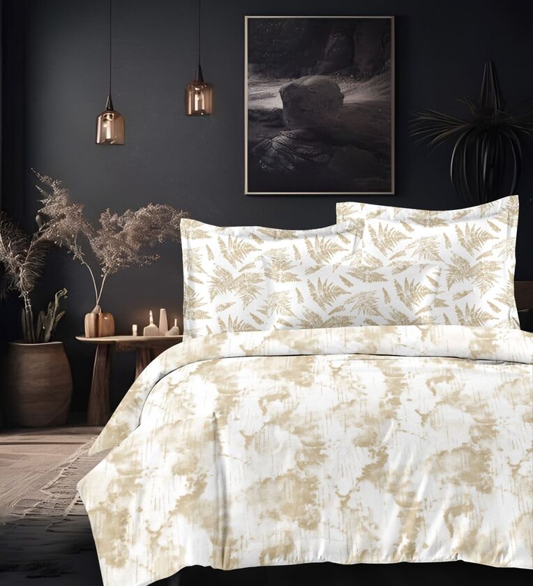 Yellow Cotton Pritned 300TC Super King Bedsheet with 2 Coordinate Pillow Covers