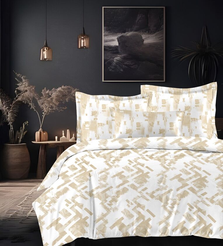 Yellow Cotton Pritned 300TC Super King Bedsheet with 2 Coordinate Pillow Covers