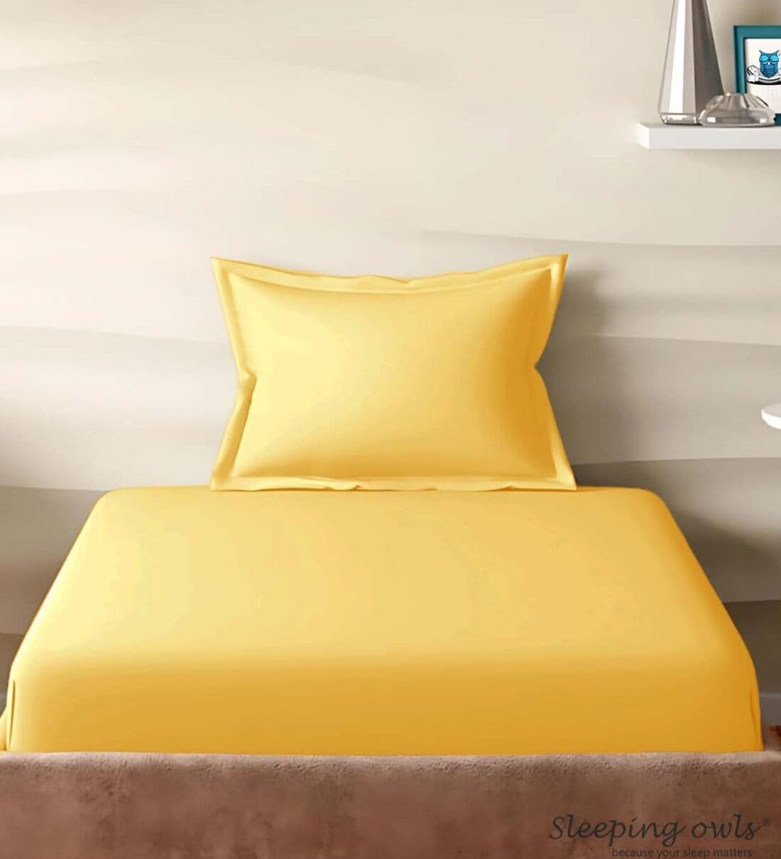 Sleeping Owls 100% Soft Cotton Solids210TC Plain Single Bedsheet with 1 Pillow Cover - GOLD