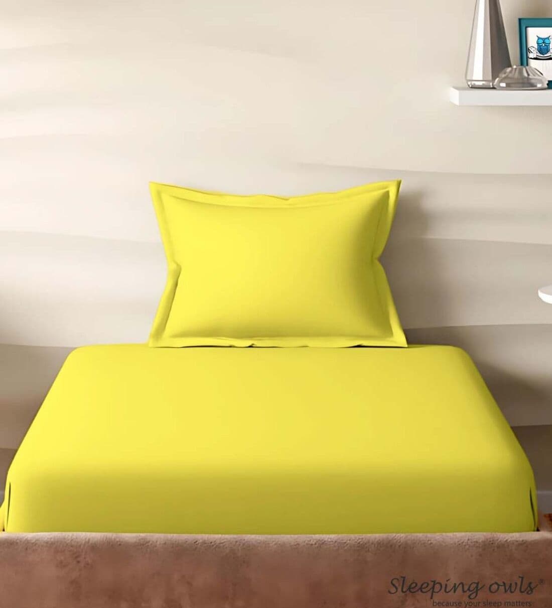 Sleeping Owls 100% Soft Cotton Solids210TC Plain Single Bedsheet with 1 Pillow Cover - YELLOW