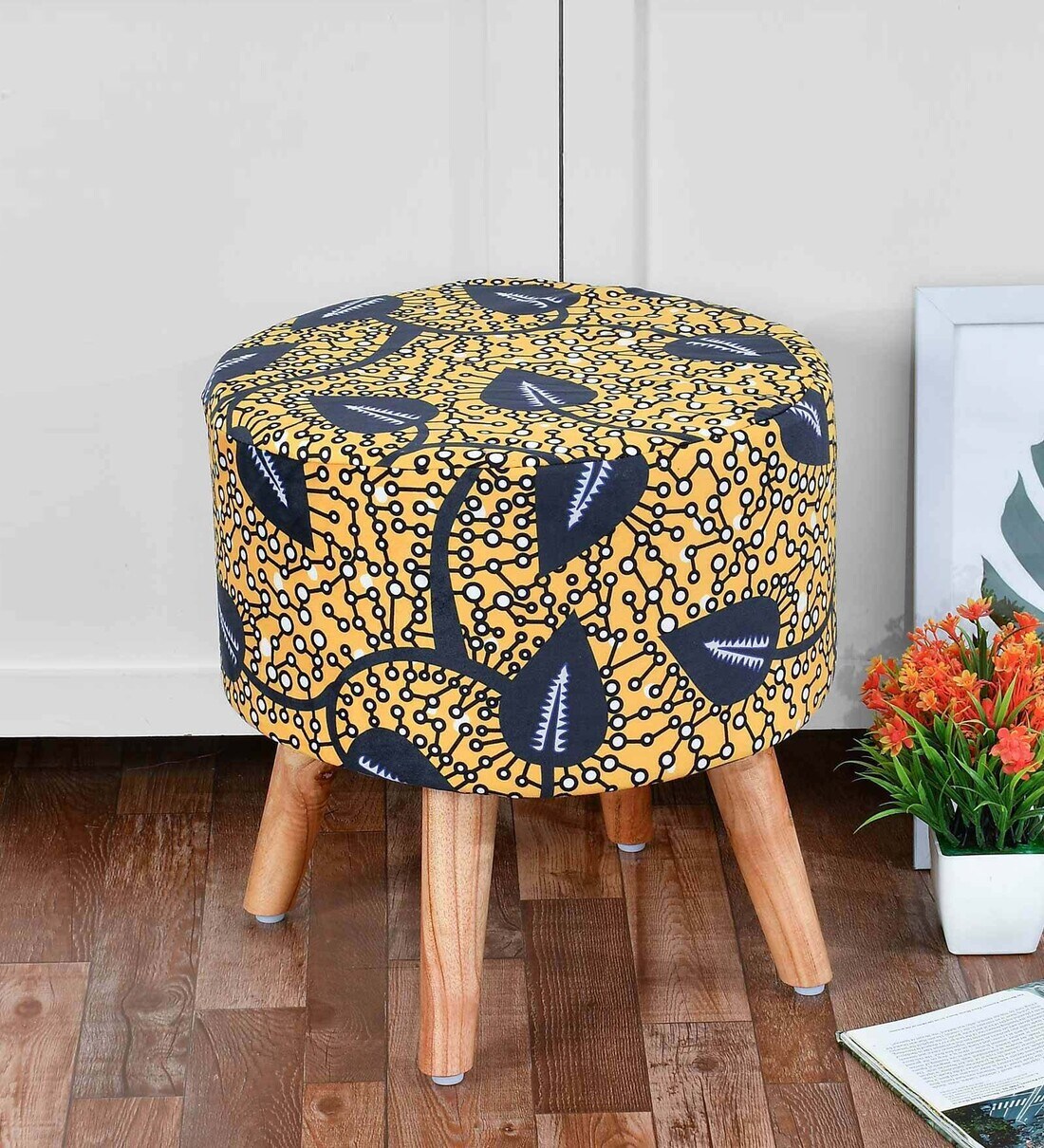Primary Material: 4Legs Calwood Fabric: Suede Velvet, Form Pattern: 3D Digital Print. Care Instructions: Spot cleaning with a damp cloth. Don't soak Package Include: 1 Wooden Stool Dimension: H 16 x W 16 x D 16, Seating Height:- 16 (all dimensions are in inches)